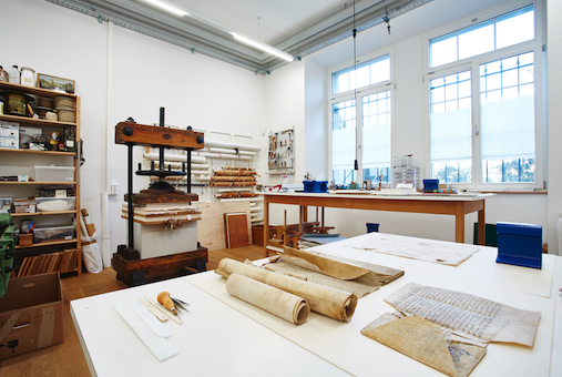 L’atelier de restauration s’occupe de la restauration des volumes manuscrits médiévaux et des incunables du Couvent des Cordeliers. Cependant, l’atelier du Couvent des Cordeliers de Fribourg est également ouvert à tout moment pour des commandes extérieures.