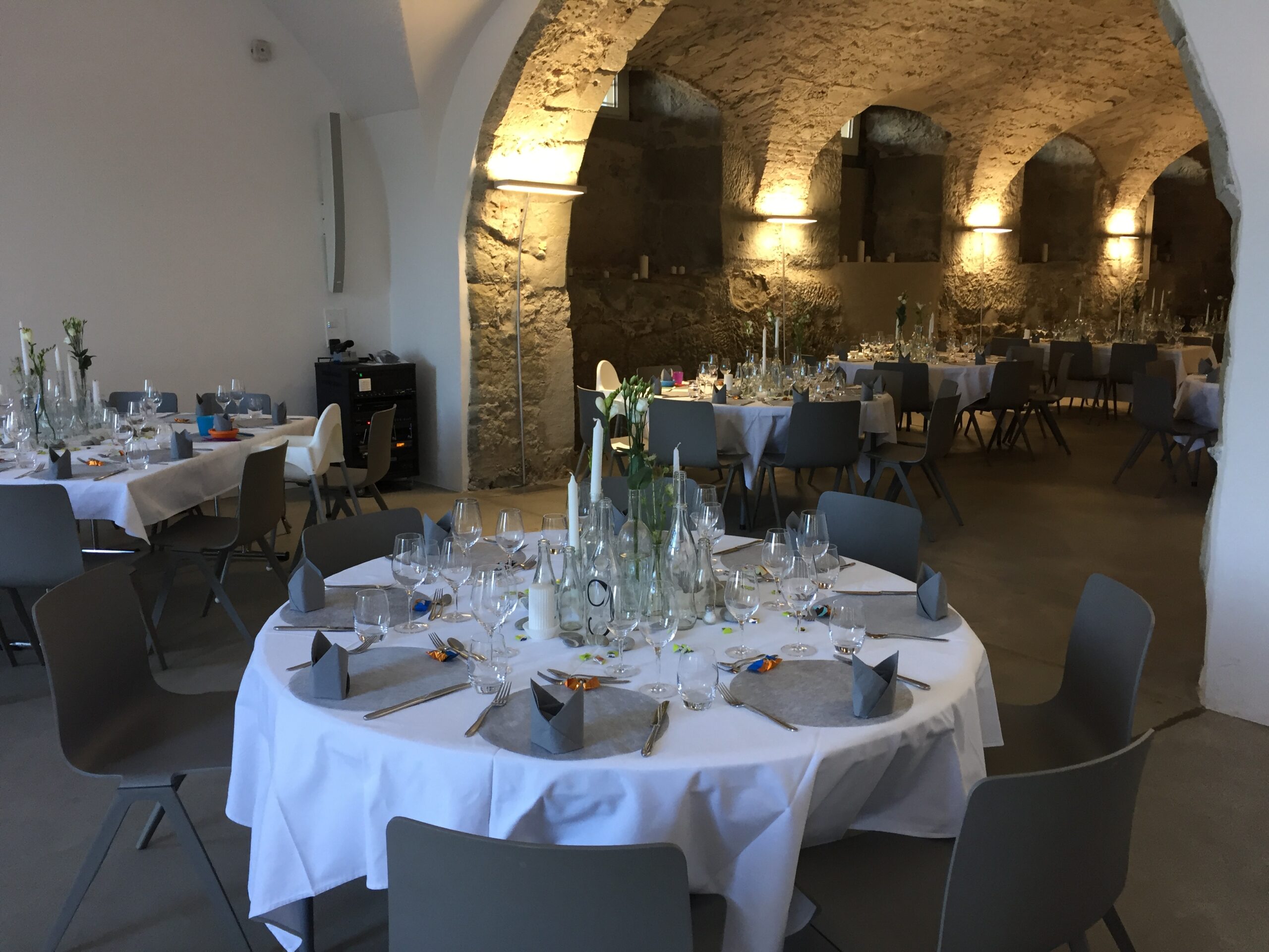 - Nappes : Il est possible de commander des nappes blanches pour les tables auprès du Couvent des Cordeliers. La location, lavage inclus est de CHF 18.–/pièce.